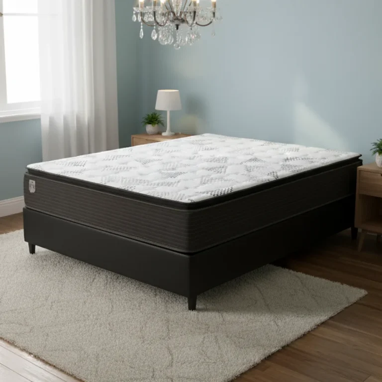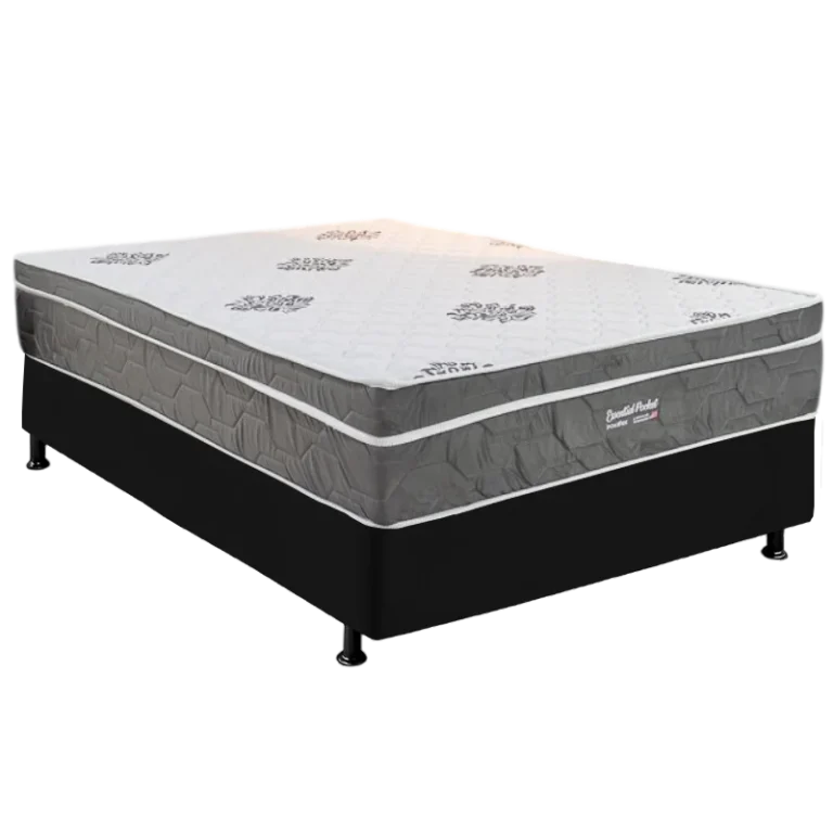 Colchão Casal Essential Pocket D26 + Base Box Simples Corino Preto – INOVAFLEX + ALTO NÍVEL CAMAS E COLCHÕES