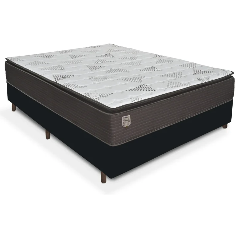 Colchão Casal Blue Sea D28 + Base Box Simples Corino Preto – ANJOS COLCHÕES + BIOSTAR