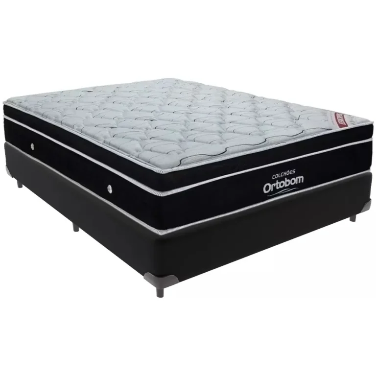 ColchÃo Casal Elegant Superpocket D33 + Base Box Simples Corino Preto – Ortobom + Biostar