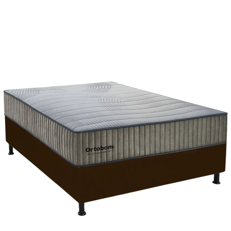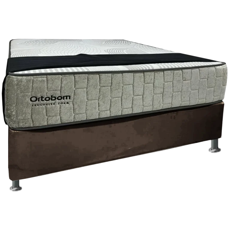 Colchão Casal Exclusive Foam HR 33 + Base Box Simples Corino Marrom – ORTOBOM + ALTO NÍVEL CAMAS E COLCHÕES