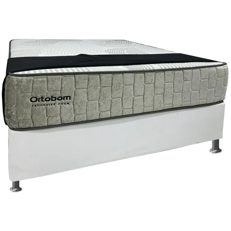 Colchão Casal Exclusive Foam HR 33 + Base Box Simples Corino Branco – ORTOBOM + ALTO NÍVEL CAMAS E COLCHÕES