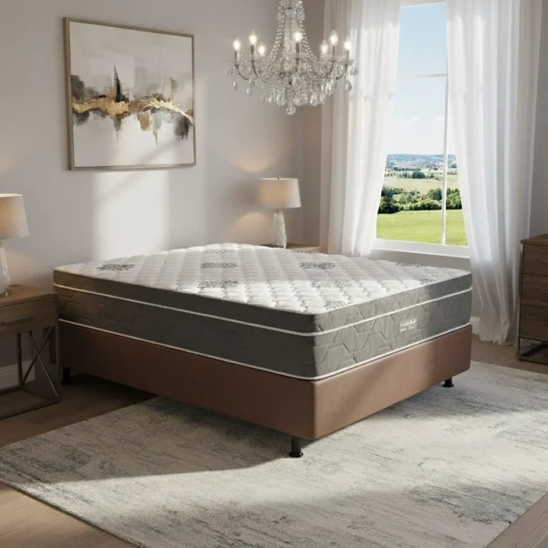 Colchão Casal Essential Pocket D26 + Base Box Simples Corino Marrom – INOVAFLEX + ALTO NÍVEL CAMAS E COLCHÕES