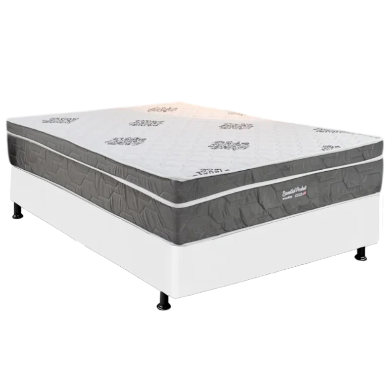 Colchão Casal Essential Pocket D26 + Base Box Simples Corino Branco – INOVAFLEX + ALTO NÍVEL CAMAS E COLCHÕES