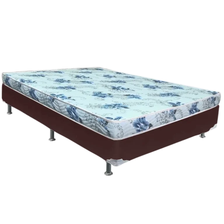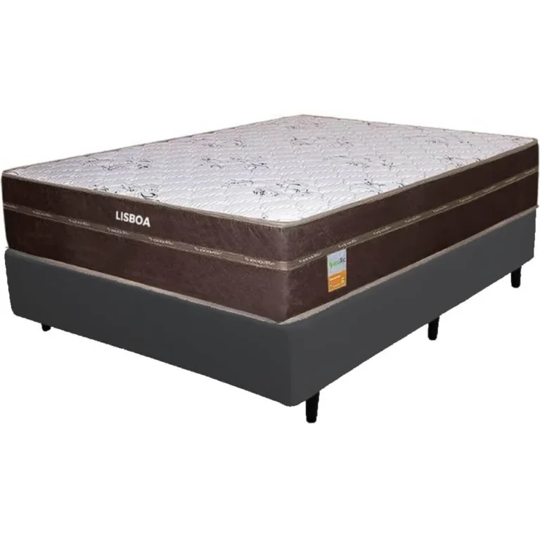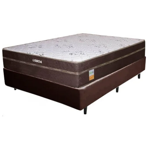 Colchão Casal Lisboa 24 cm D28 + Base Box Simples Corino Marrom – ECOTEC + ALTO NÍVEL CAMAS E COLCHÕES