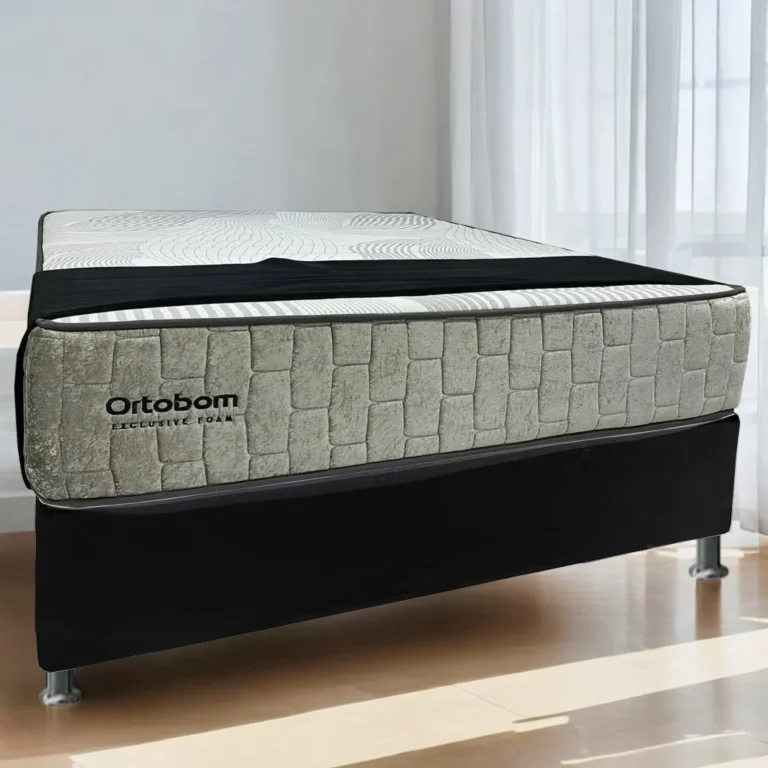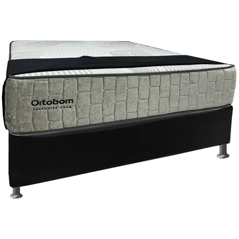 Colchão Casal Exclusive Foam HR 33 + Base Box Simples Corino Preto – ORTOBOM + ALTO NÍVEL CAMAS E COLCHÕES