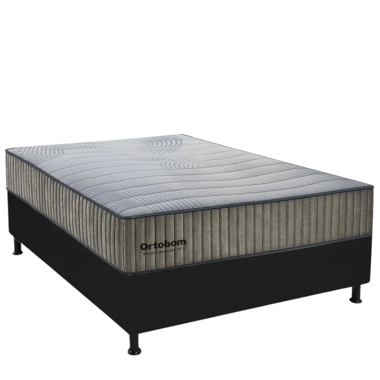 Colchão Casal Dream Soft D20 + Base Box Simples Corino Preto – ORTOBOM + ALTO NÍVEL CAMAS E COLCHÕES