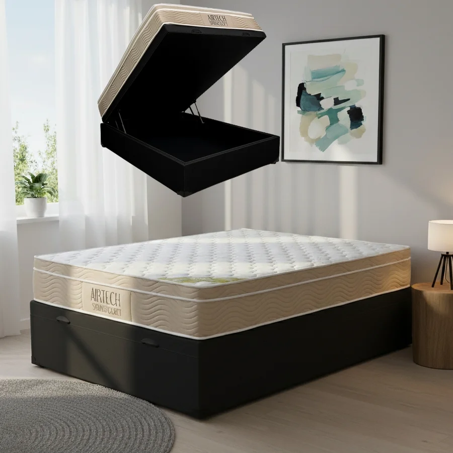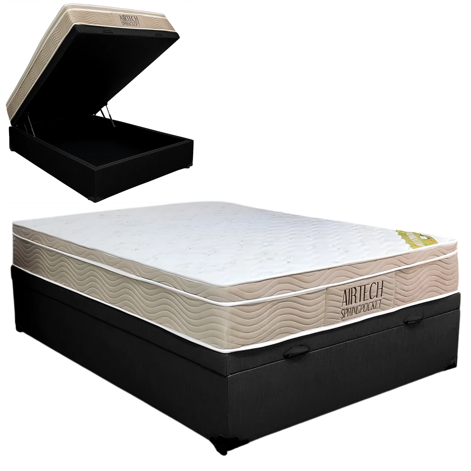 Colchão Casal Airtech Springpocket + Base Box Baú Preto – ORTOBOM + BIOSTAR