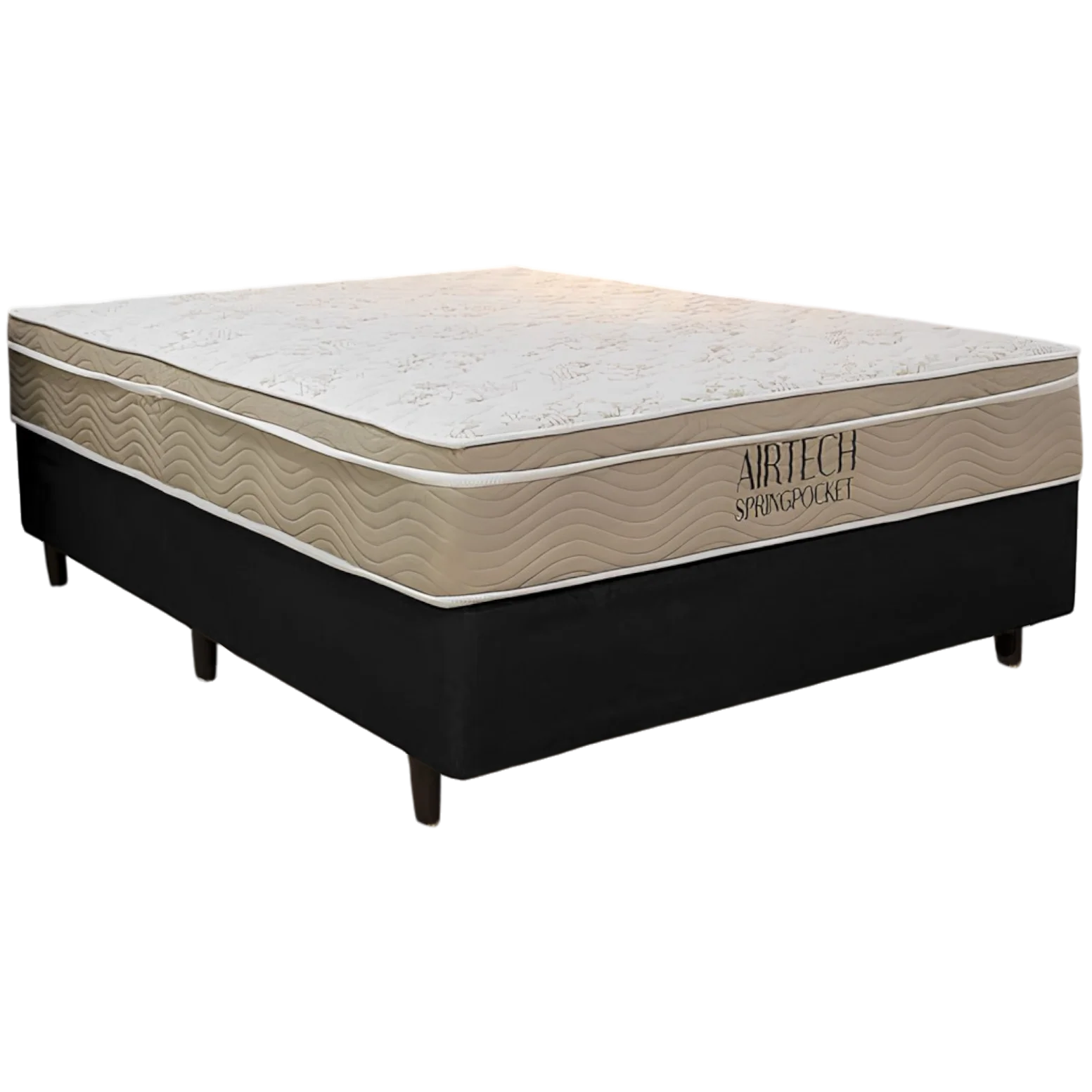 Colchão Casal Airtech Springpocket + Base Box Simples Corino Preto – ORTOBOM + ALTO NÍVEL CAMAS E COLCHÕES