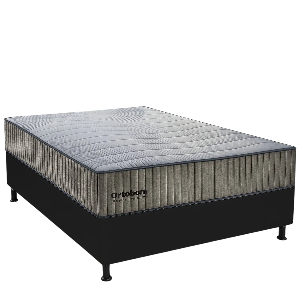 Colchão Casal Exclusive Foam HR 33 + Base Box Simples Corino Preto – ORTOBOM + BIOSTAR