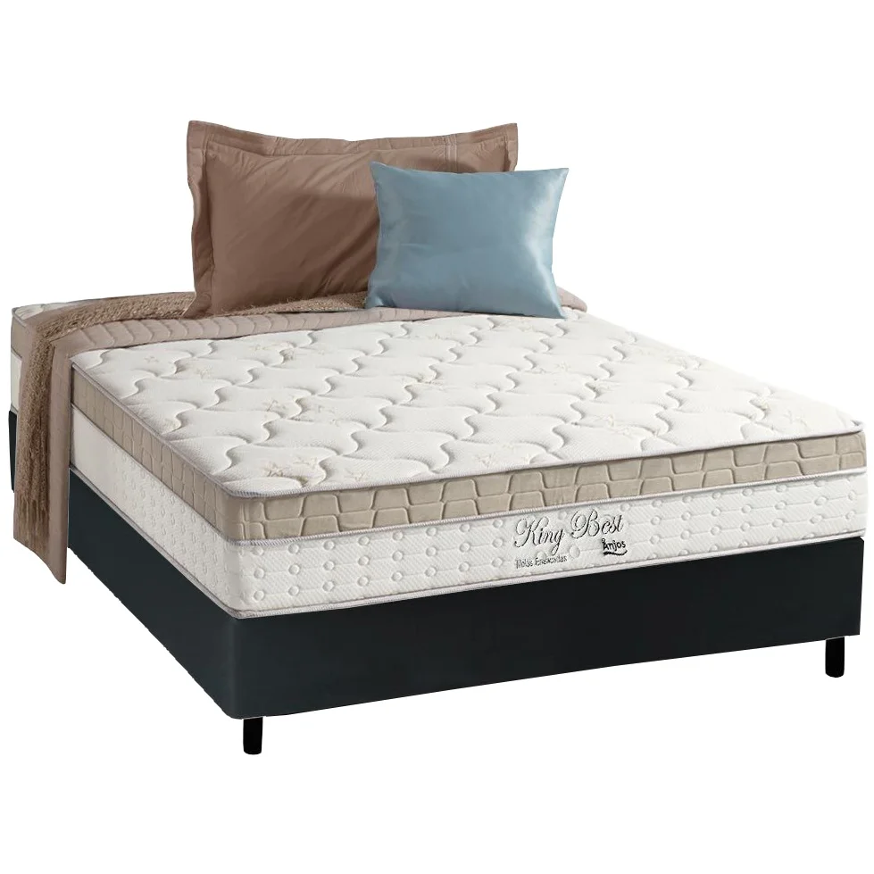 Colchão Casal King Best D28 + Base Box Simples Corino Preto – ANJOS COLCHÕES + ALTO NÍVEL CAMAS E COLCHÕES