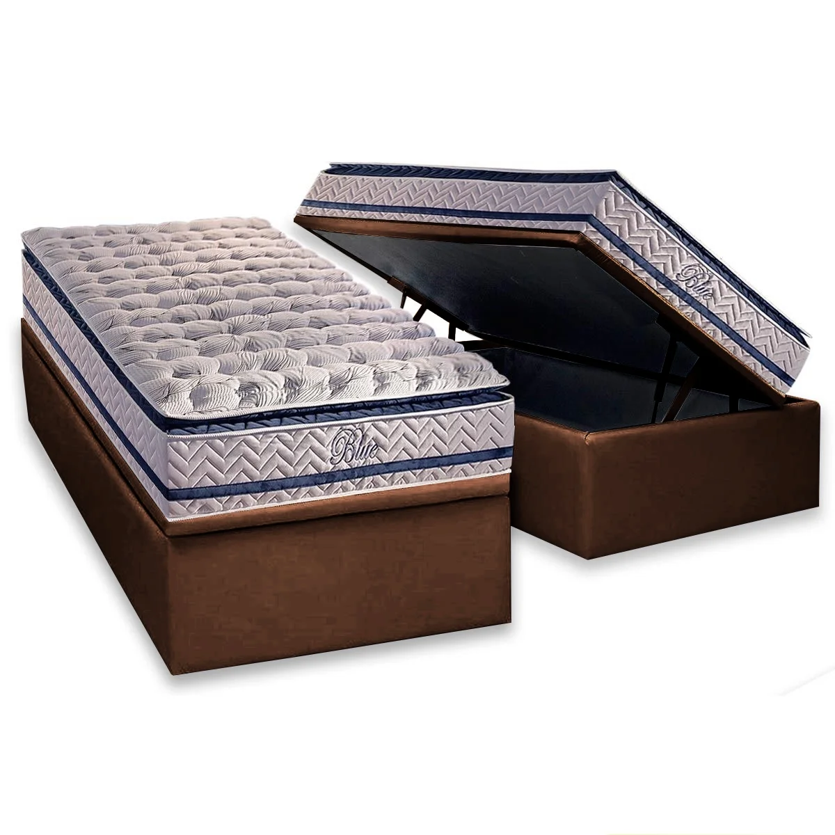 Colchão Solteiro Blue + Base Box Baú Marrom – PAROPAS/BIOSTAR