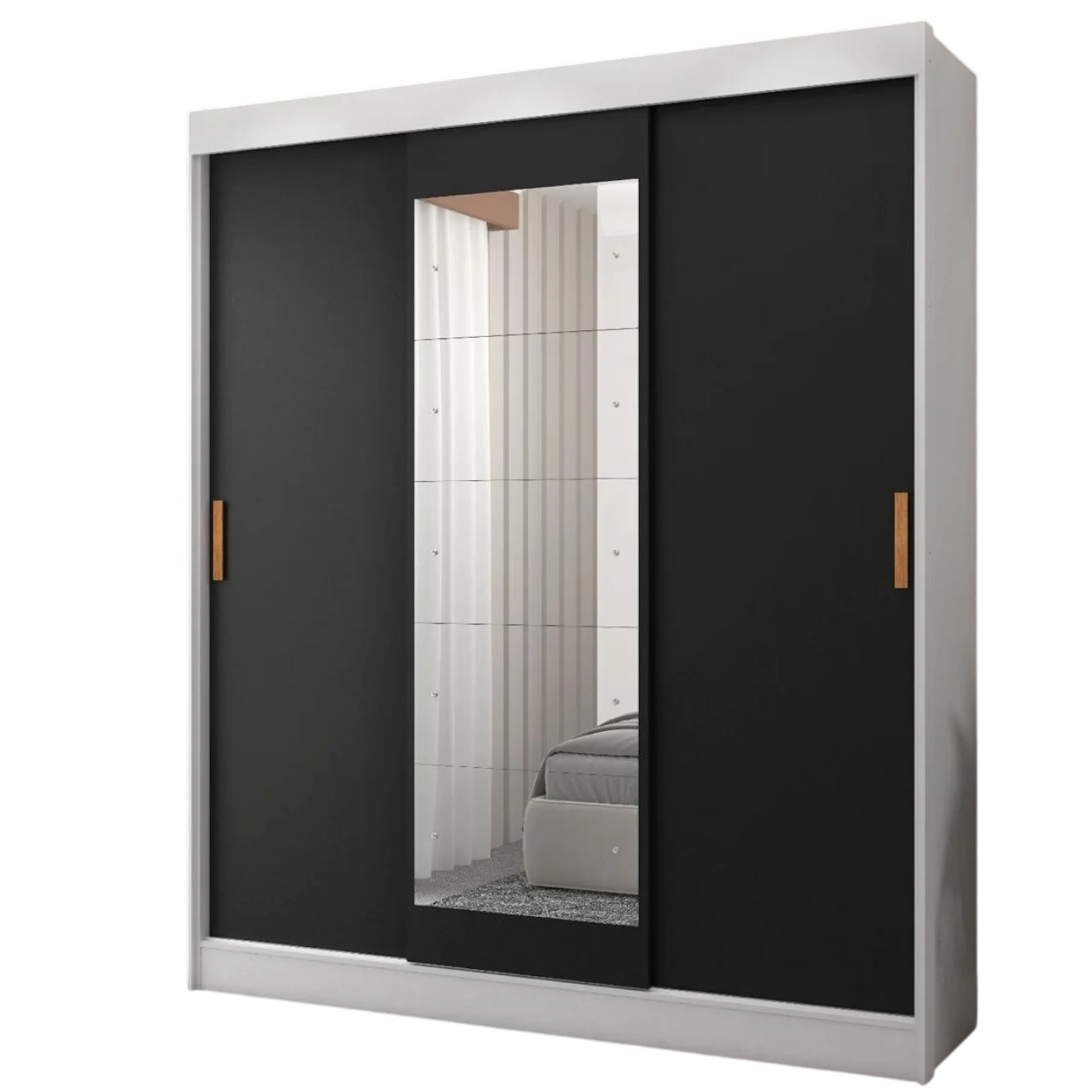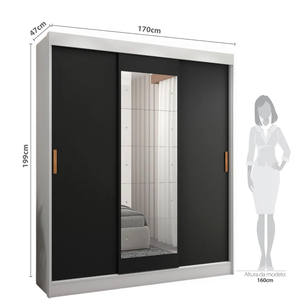 Guarda-Roupa 3 Portas (com espelho) Capri 1,70 m Branco/Preto/Branco – FELLICCI