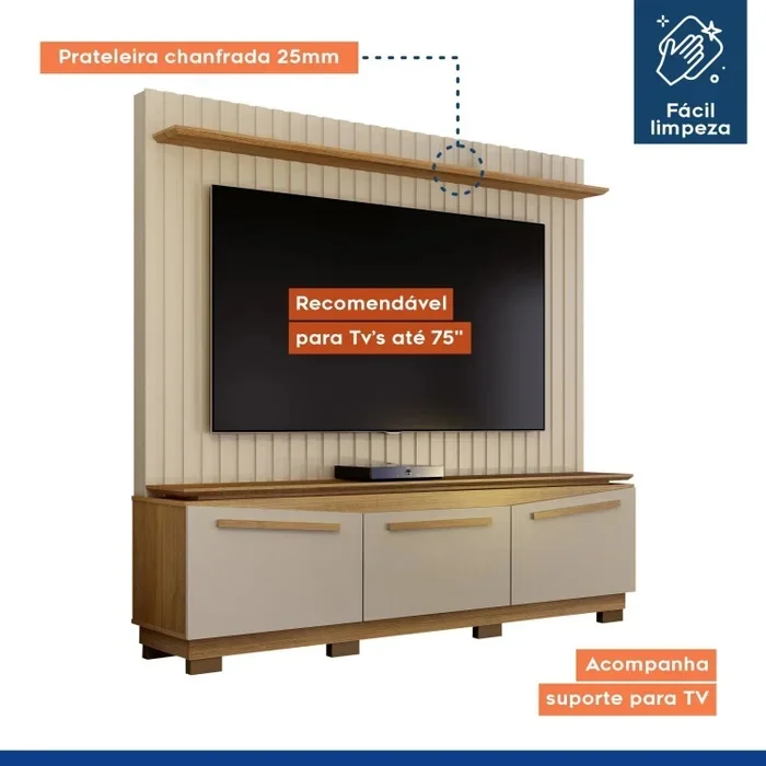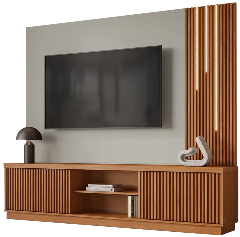 – Espaço para TV com 86 cm x 146 cm (AxL)