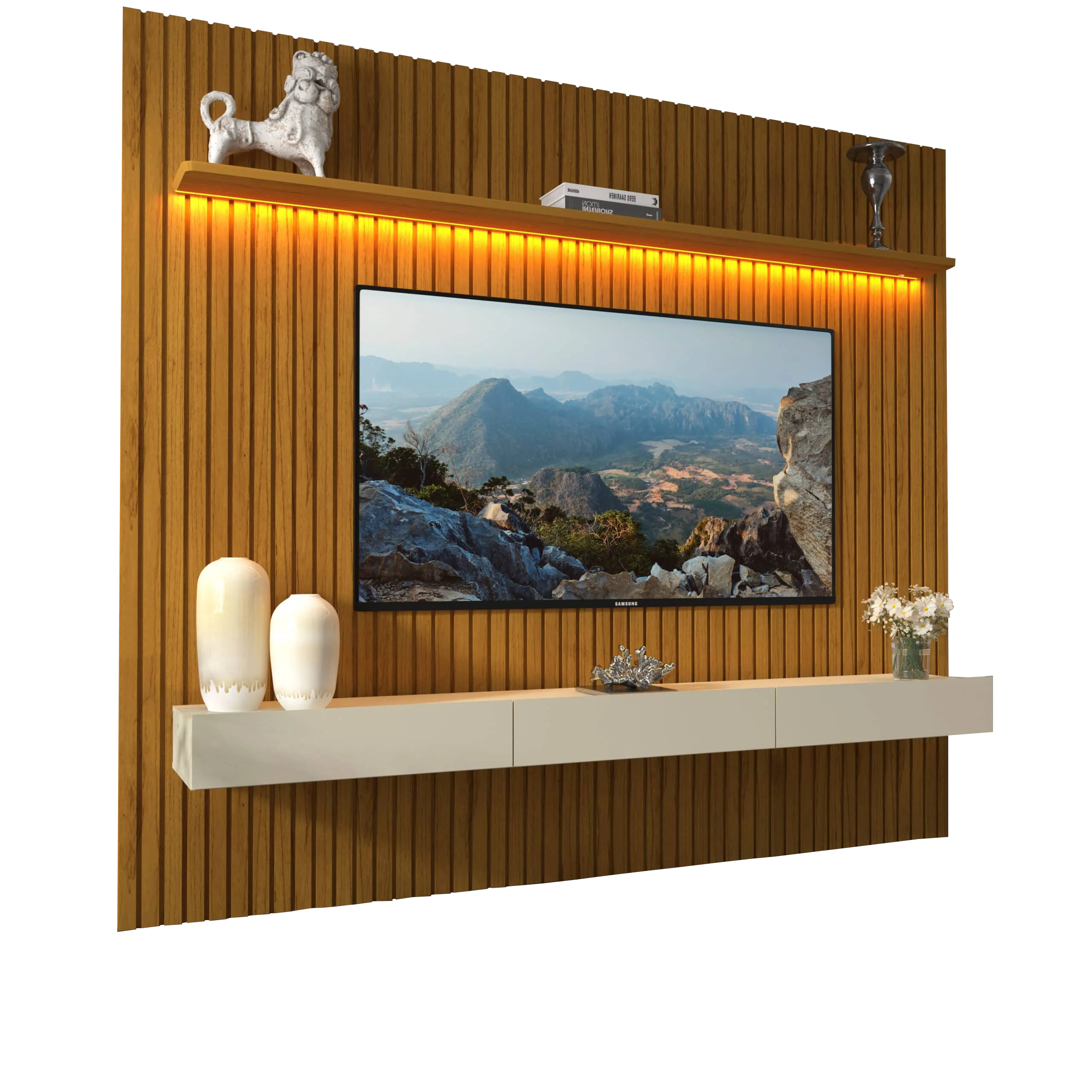 Home até 85″ Nobre Ripado (Com Nicho) Naturale/Off White – GELIUS