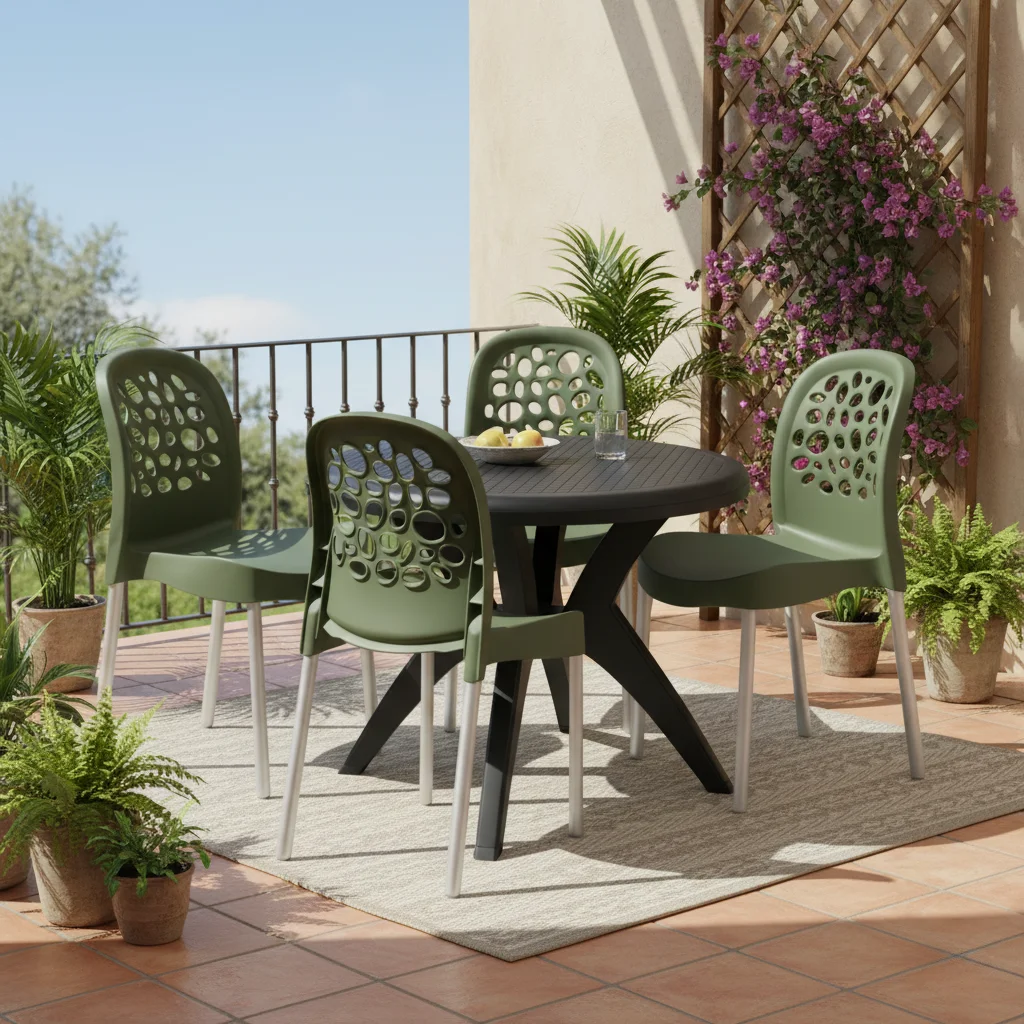 Mesa Deluxe 90 Preto com 4 Cadeiras Deluxe Verde – FORTE PLÁSTICO