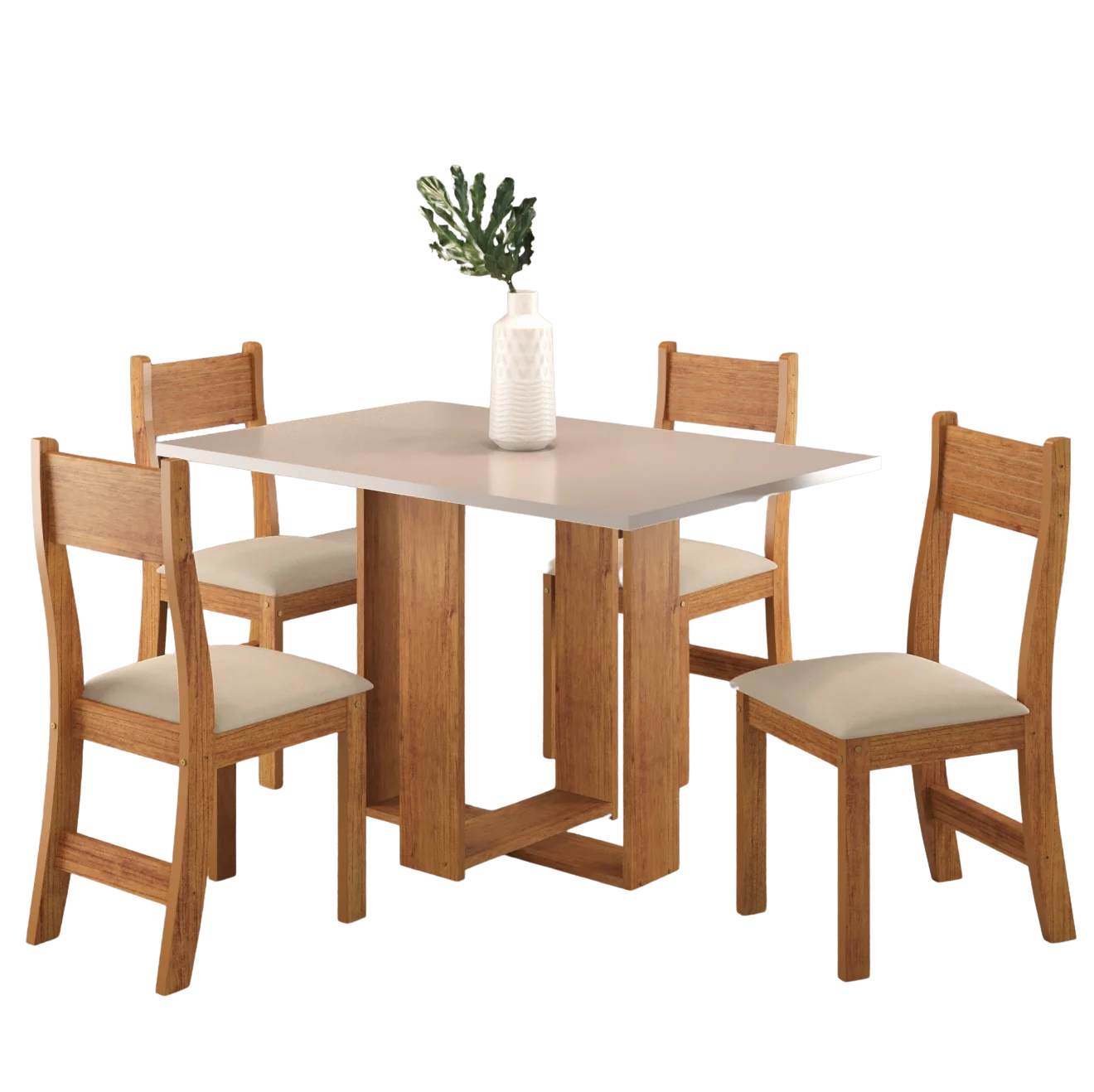 Mesa Magic/Milani Mel/Blonde com 4 Cadeiras Brisa Veludo Marfim – VIERO MÓVEIS