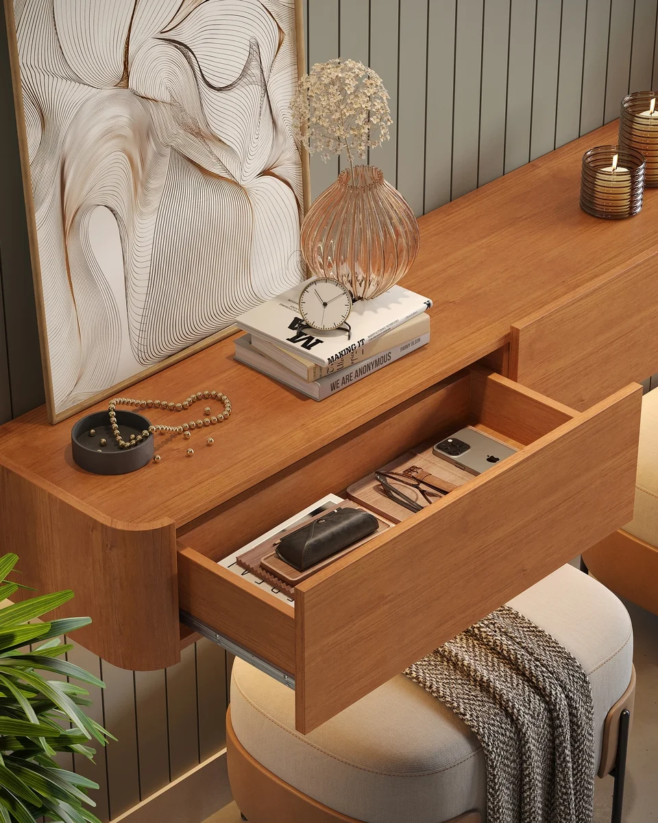 – Três gavetas com corrediças telescópicas