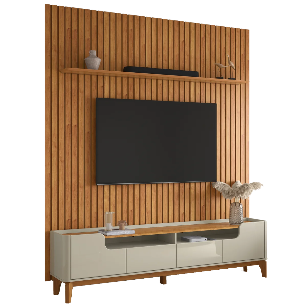 Painel Ripado até 85″ Supremo 2.3 Cinamono + Rack Flip 2.2 Cinamono/Off White – PATRIMAR