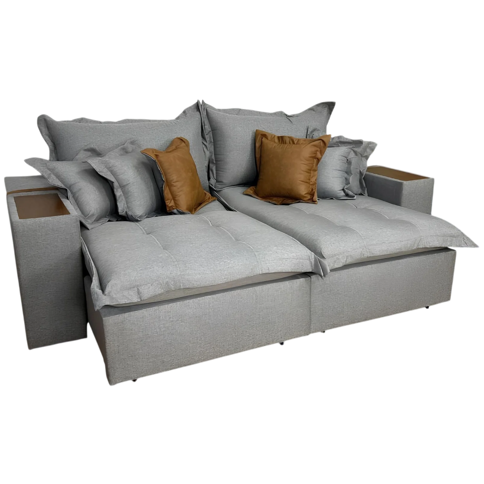 Sofá Cama Tebas/Thebas/Gabriela 2,50 m Linho Grafite 301/Courino Dalas – ZARAT ESTOFADOS