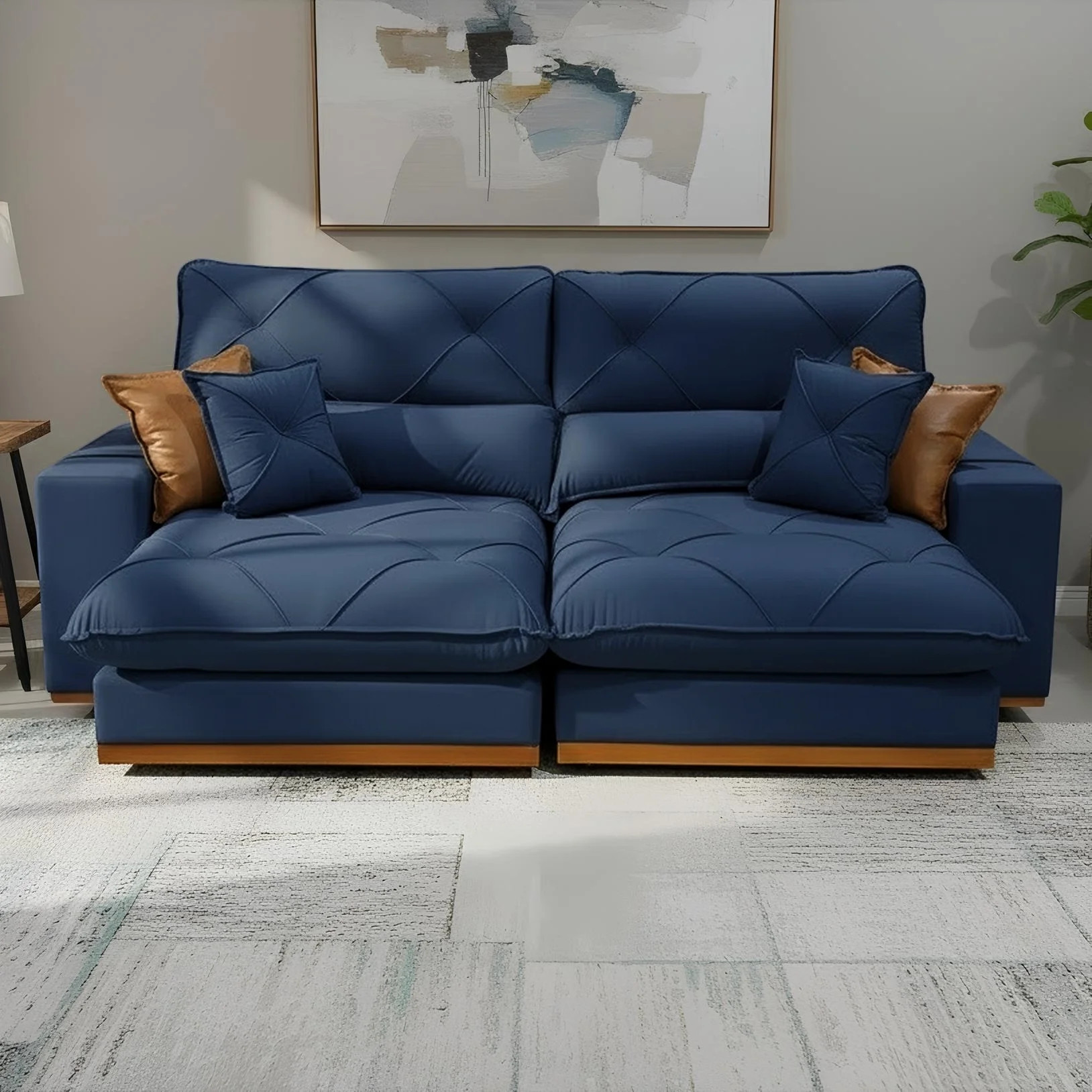 Sofá Retrátil e Reclinável Aquiles/Gran Bello 2,30 m Veludo Azul 104 – ZARAT ESTOFADOS