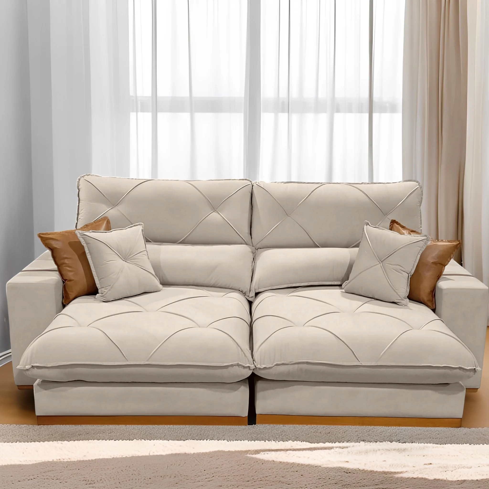 Sofá Retrátil e Reclinável Aquiles/Gran Bello 2,50 m Veludo Bege 106 – ZARAT ESTOFADOS