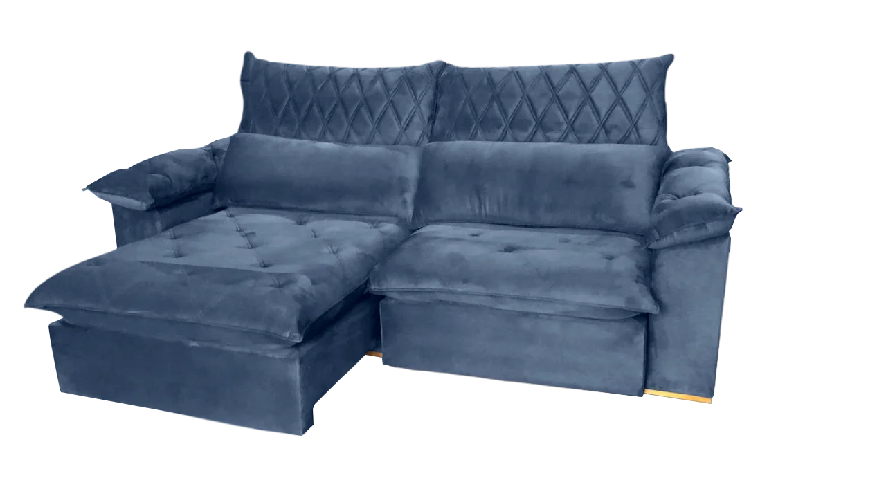 Sofá Retrátil e Reclinável Arezzo 2,50 m Veludo Azul – ARJAN DECOR