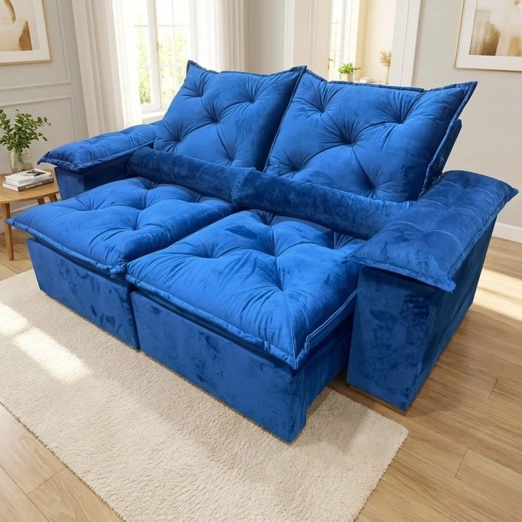 Sofá Retrátil e Reclinável Grécia Azul 2,00 m – QUINE ESTOFADOS