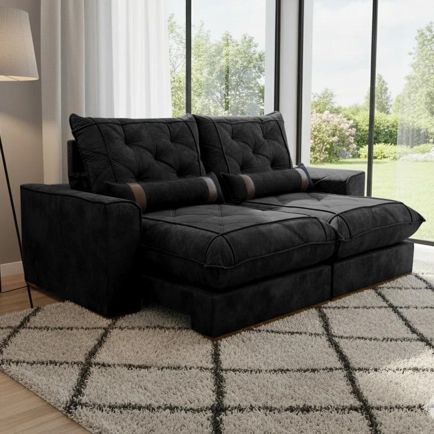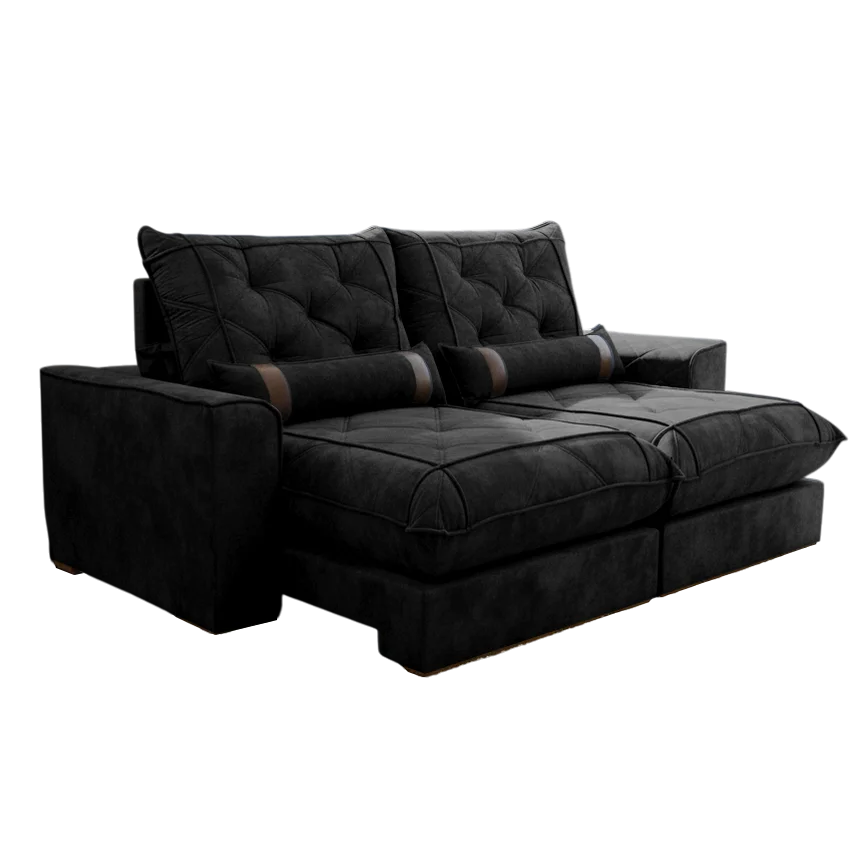 Sofá Retrátil e Reclinável Poseidon 029 2,50 m Veludo Preto – VICAM ESTOFADOS