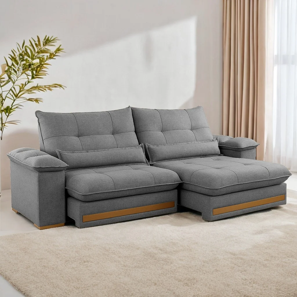Sofá Retrátil e Reclinável Qatar 2,00 m Linho Cinza A227 – TREVO ESTOFADOS